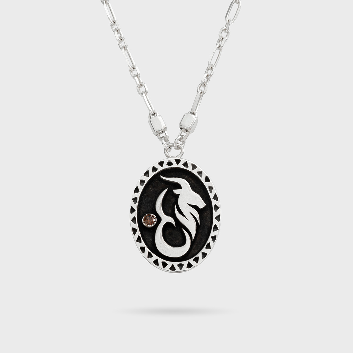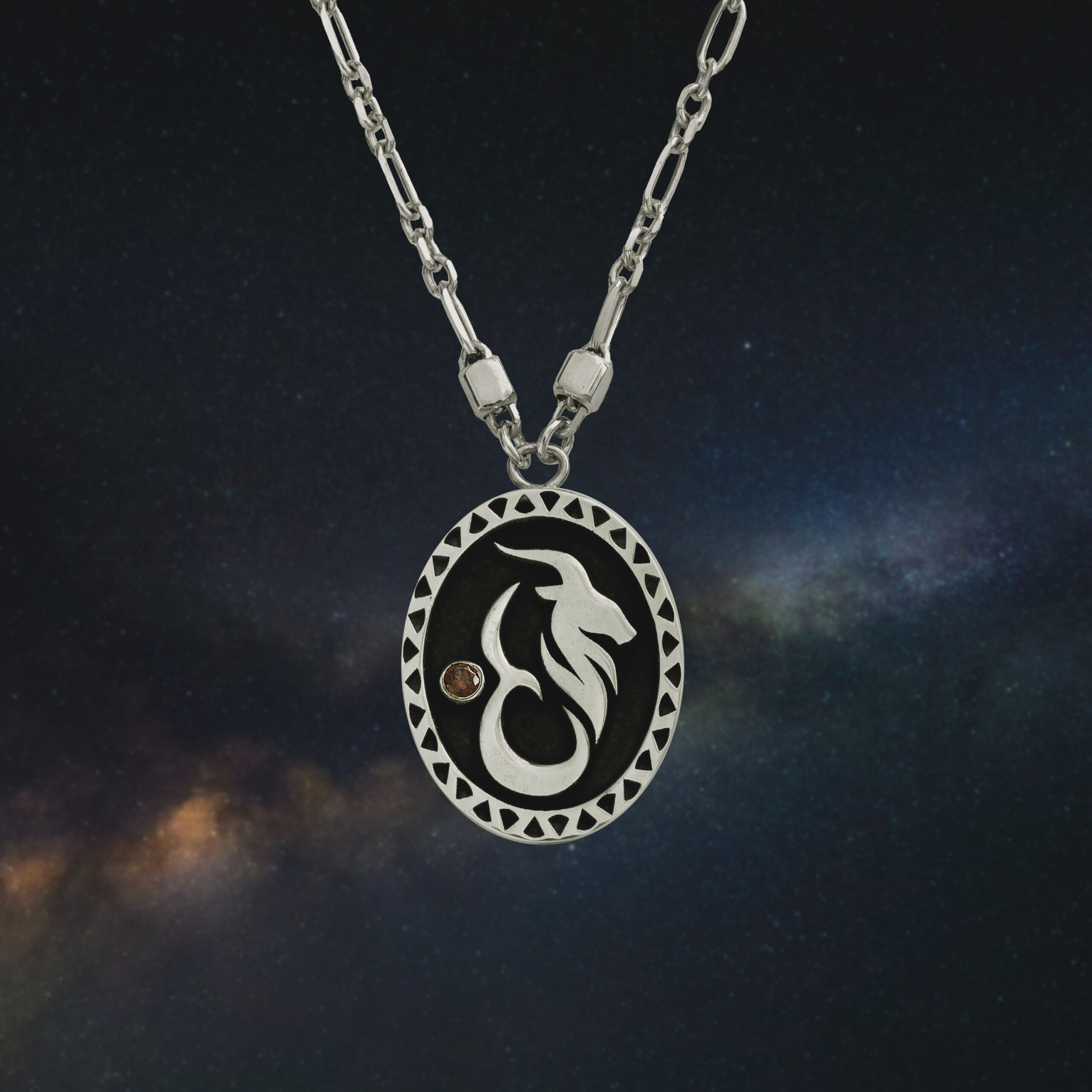 Αυτό το χειροποίητο κολιέ ζώδιο Αιγόκερως, από ασήμι 925, ανήκει στη Celestia Collection της Olor,
