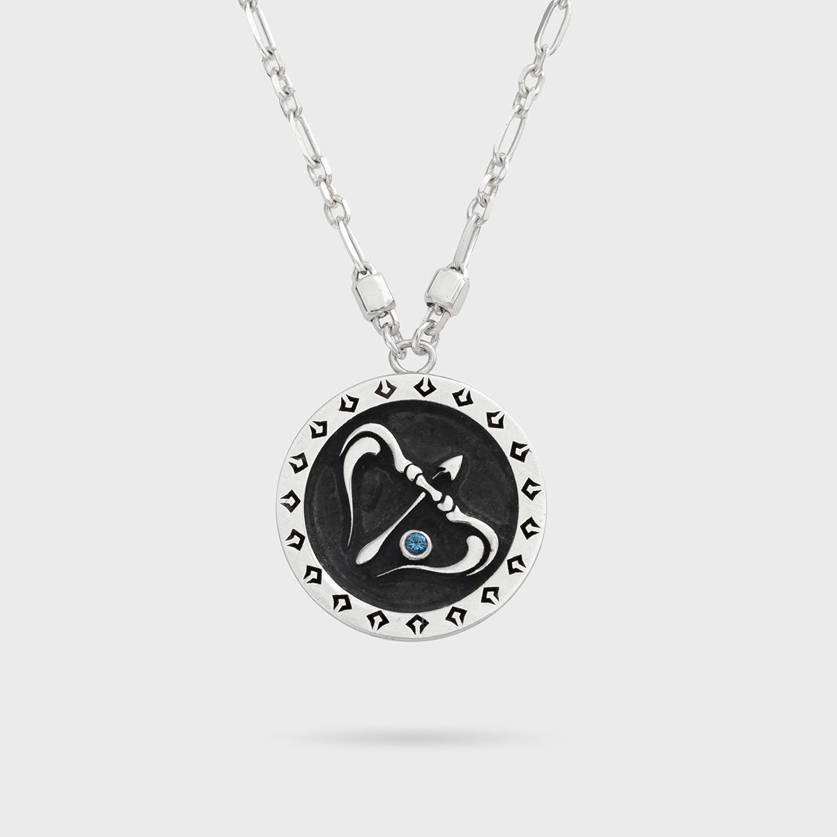 Αυτό το χειροποίητο κολιέ ζώδιο Τοξότης, από ασήμι 925, ανήκει στη Celestia Collection της Olor,