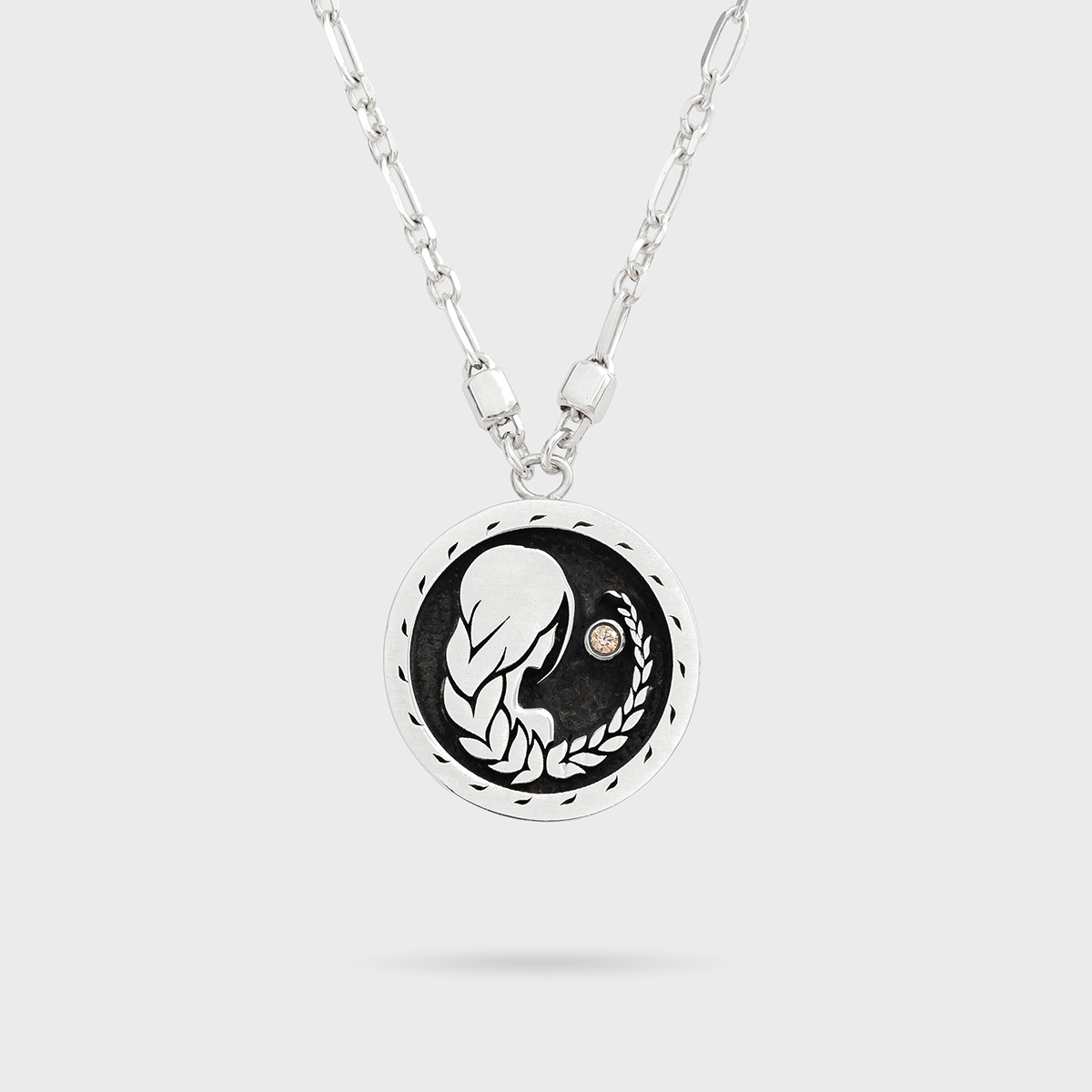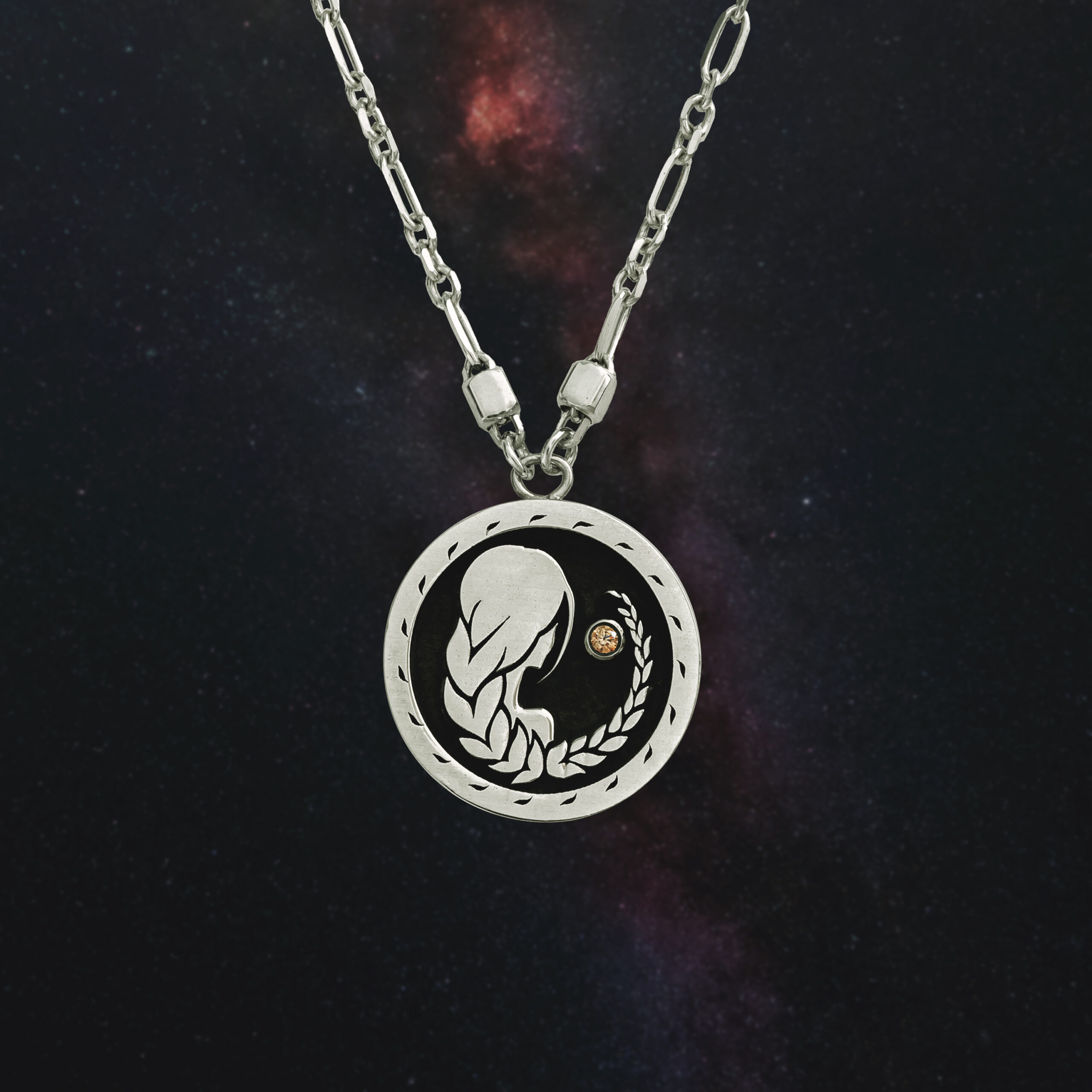 Αυτό το χειροποίητο κολιέ ζώδιο Παρθένος, από ασήμι 925, ανήκει στη Celestia Collection της Olor,